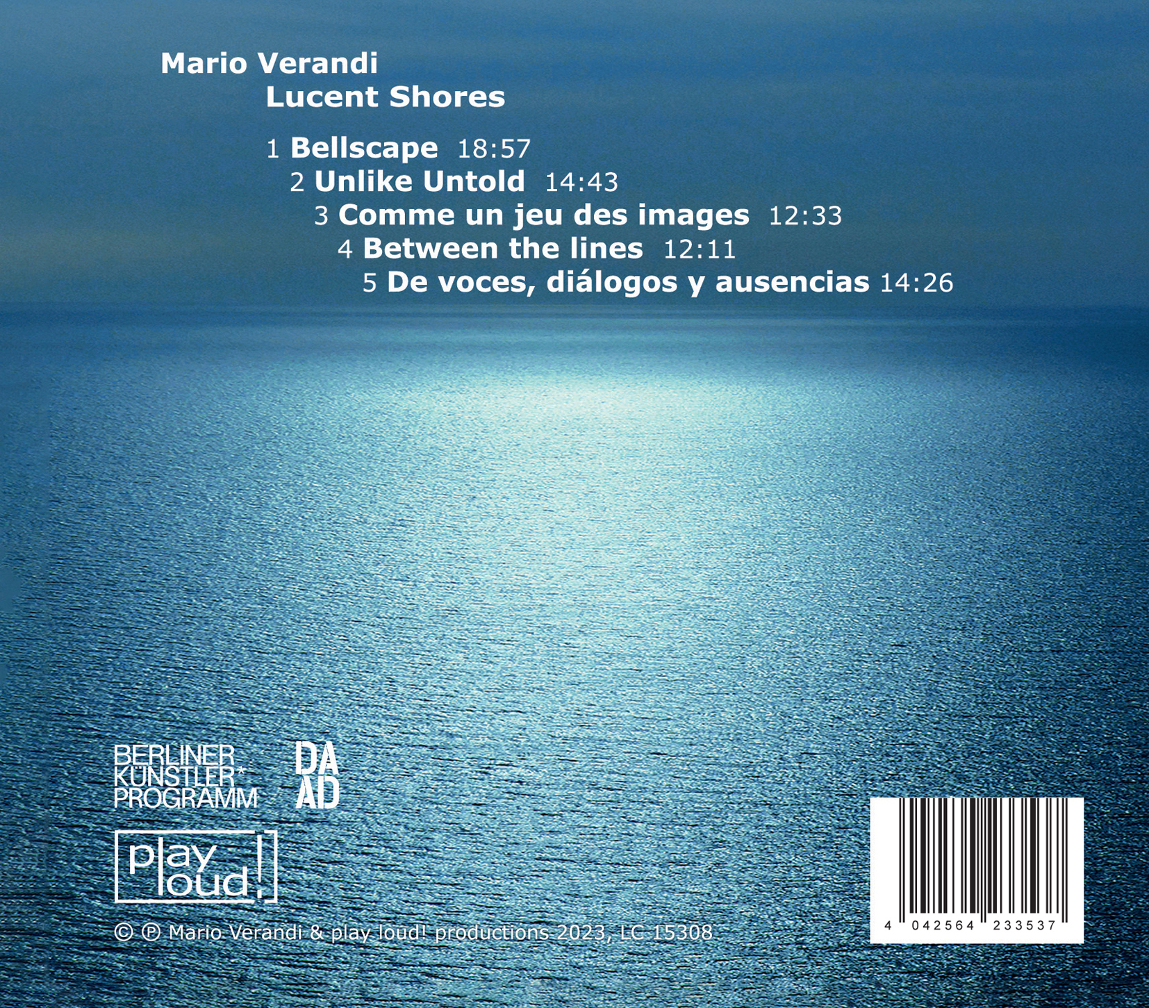 Lucent Shores features Mario Verandi´s electroacoustic music compositions produced between 2002 and 2017. The album complements Verandi´s Orillas Distantes – Distant Shores, an album released in 2001 that contains his early electroacoustic music works (1995 – 2000). The two albums reveal the composer´s strong background in the tradition of acousmatic music whose roots go back to the musique concrète of the 1940s. For the production of the compositions included in this album the composer worked in renowned European institutions such as the ZKM (Zentrum für Kunst und Medien) in Karlsruhe, the INA-GRM (Groupe de Recherches Musicales) in Paris, the Elektronisches Studio TU-Berlin and the Studio für Elektroakustische Musik at the Akademie der Künste in Berlin. These finely crafted compositions use sound material coming from a variety of recordings made in different locations such as the bells of a carillon located in a 42-meter-high tower in Berlin-Tiergarten, diverse machinery and objects from an opera theater in Argentina as well as vocal sounds produced by an actor.